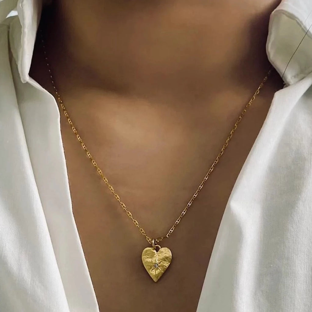 Elevate your style with our exquisite Heart Shape Vintage Charm Necklace. This stunning piece features a delicate heart-shaped vintage charm meticulously crafted and plated with lustrous 14K gold. Suspended from a dainty chain, this necklace exudes elegance and sophistication. Perfect for any occasion, our Heart Shape Vintage Charm Necklace adds a touch of nostalgic allure to your look, making it a truly timeless and versatile accessory. Embrace the elegance of the past with a contemporary twist and make a statement with this captivating necklace.