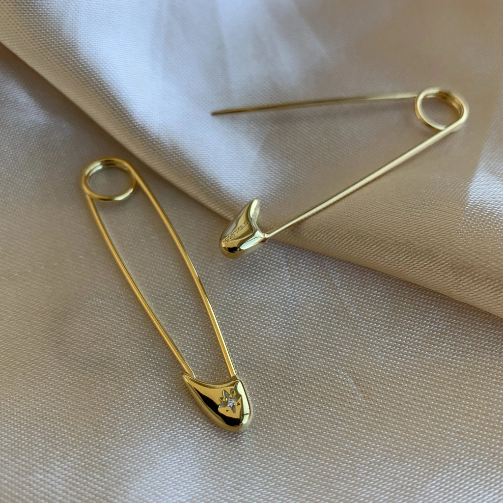 14K Gold Plated 925 Sterling Silver Cubic Zirconia Safety Pin Earrings. Classic jewelry vibe combined with the fashion-forward trend. Comfortable for daily wear, suitable for every occasion.