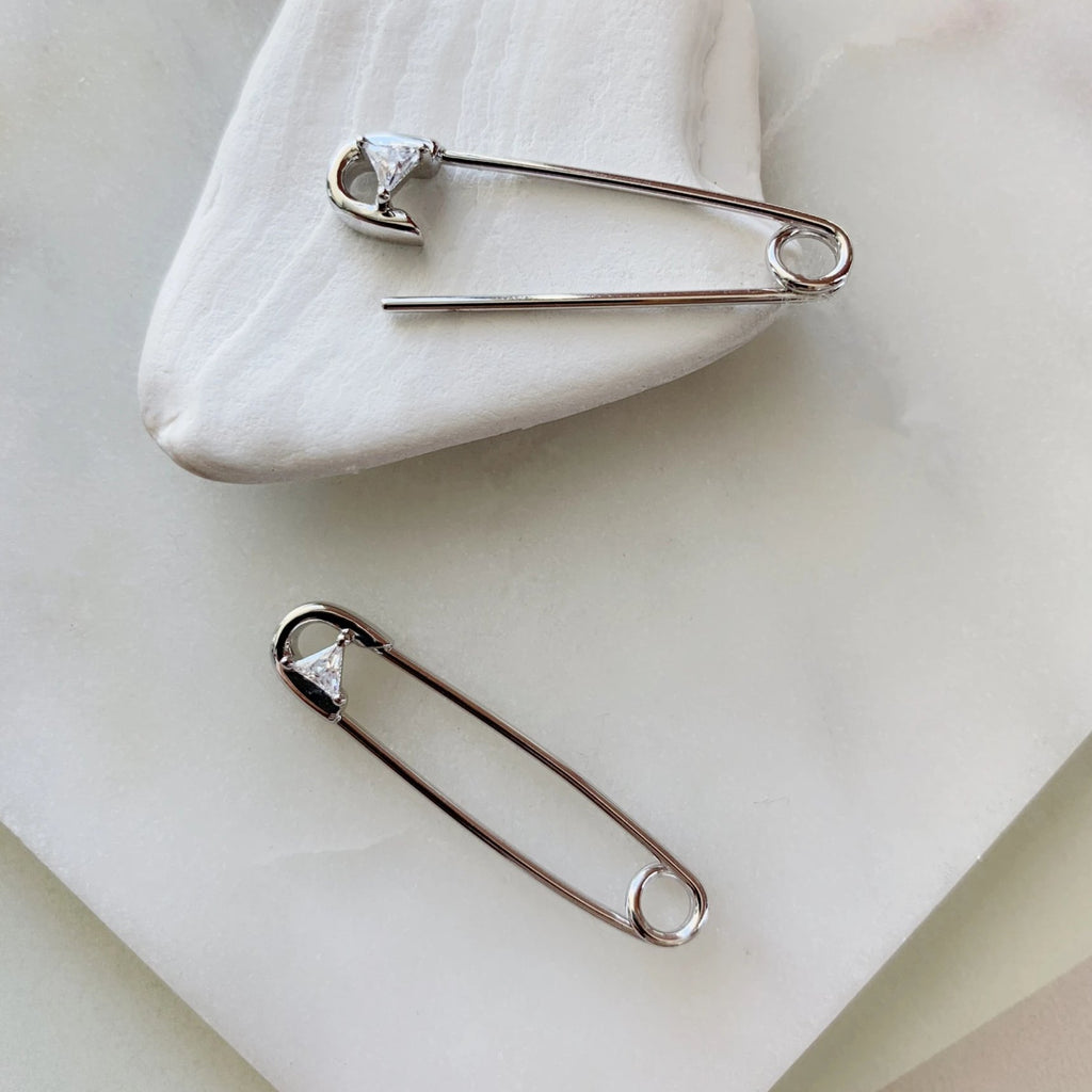 14K White Gold Plated 925 Sterling Silver Cubic Zirconia Safety Pin Earrings. Classic jewelry vibe combined with the fashion-forward trend. Comfortable for daily wear, suitable for every occasion.